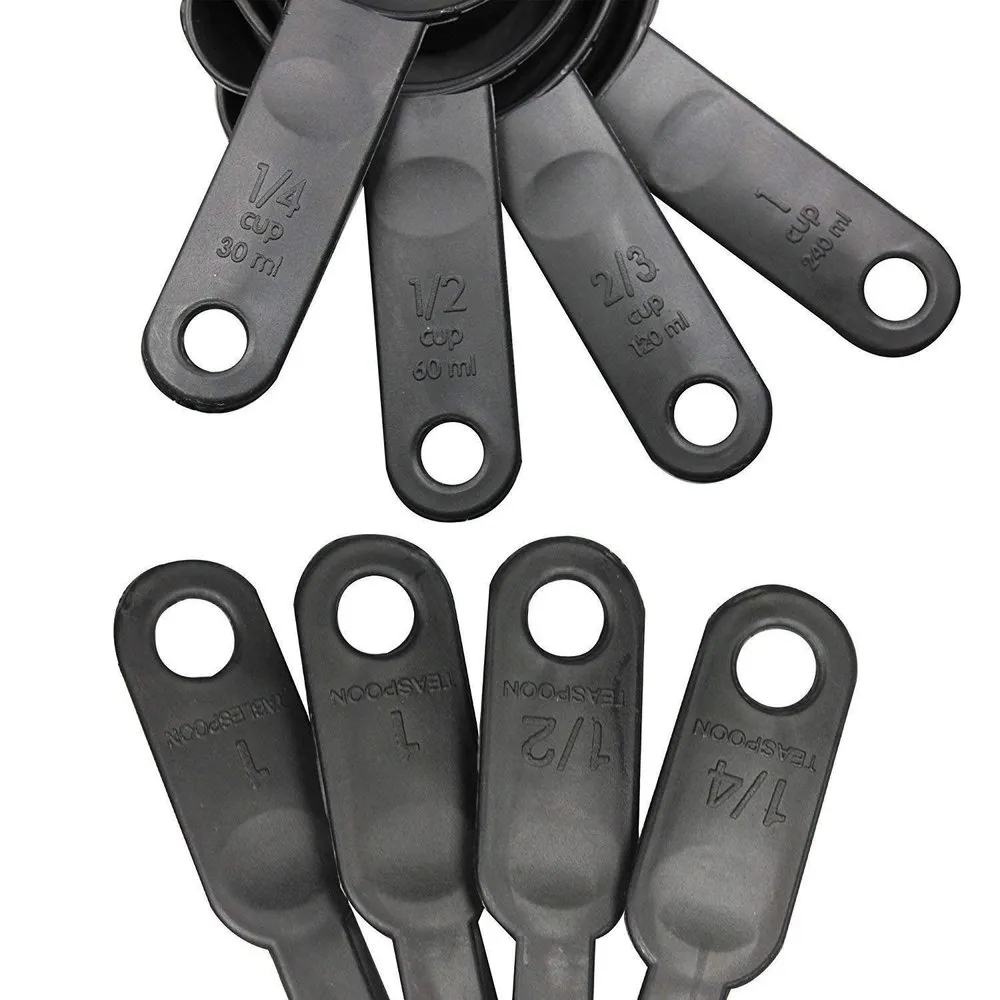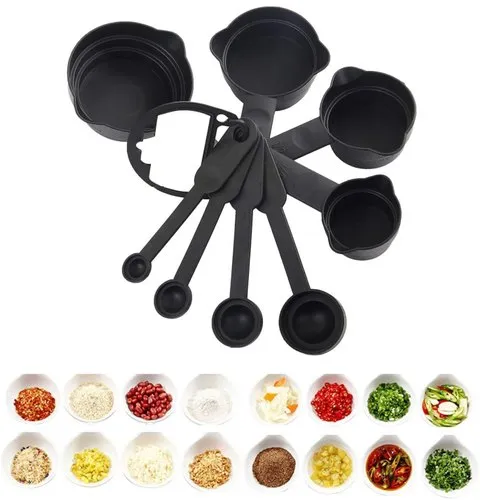 TITLE : Kitchen Measuring Cups and Spoons (8 Pcs, Black) Baking Measurement Measuring Cups and Spoons Set 8 Pcs Measurement 8 Pcs Plastic Measuring Cup, Tea, Table Spoon Set with Different Size,Plastic Measuring Cups Spoons Set Kitchen Tool Tea Coffee Kitchen Baking Cook Plastic Measuring Cups and Spoons 8 Pcs, Black Baking Measurement Measuring Cups and Spoons Set 8 Pcs