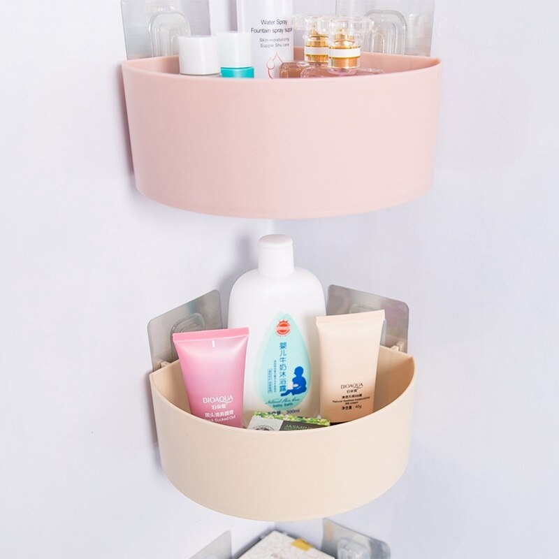 - The triangular corner shelf is made of high quality plastic and you can place it anywhere without drilling as it comes with the sticker.